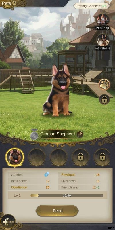 あなたの愛らしい毛皮の赤ちゃんをかわいがる機会は限られていますが、時間の経過とともに補充されます.撫でることは、後継者を育てることと同じで、成長と発展につながります。ペットはレベル 1 から始まりますが、レベルが最大になると大人と見なされ、繁殖することができます。同じ種のペットのみを繁殖させることができますが、ペットの各種にはさまざまな品種があり、それぞれに対応する血統があります.