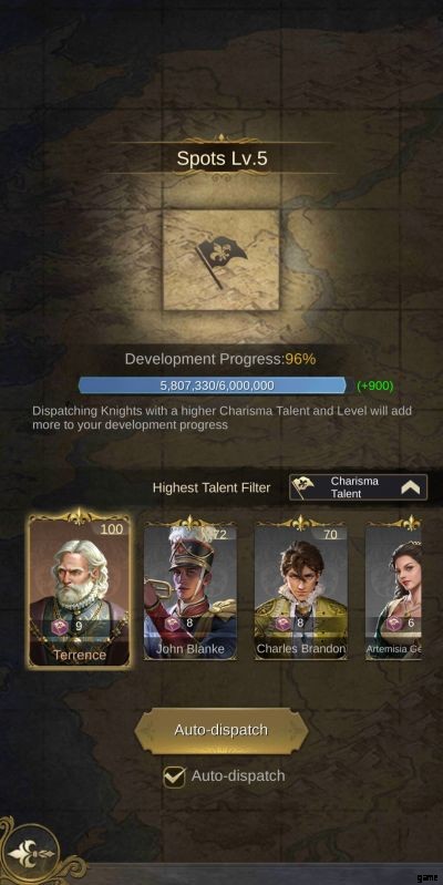 The “Develop All” function becomes available once you have unlocked at least 5 seats. This is a faster option of deploying multiple knights for training. Deployment in training still allows you to utilize knights on all other content and you can expend earned skill points and talent EXP immediately and consecutively as well. Both talent and skill upgrades can greatly increase your knight’s total attributes or power, effectively boosting your state power as well.
