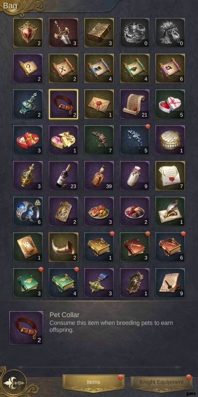 Relative to this, your bag in King’s choice holds a second tab for Knight Equipment. These are resources needed to increase your knights’ level cap once you have maxed them out, starting with level 100. These gears can be merged to obtain a higher rank one as higher level knights will need higher level knight equipment to further stretch their level caps. Be careful, though, as you might mistakenly expend all your lowest grade equipment and then immediately have a need for them afterwards.
