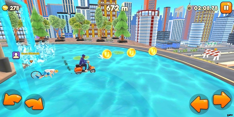 Uphill Rush New York は、シングル プレイヤー キャンペーンと他のプレイヤーの結果を最大限に引き出すマルチプレイヤー モードの代わりに、マルチプレイヤー モードがすべてです。デイリー チャレンジは、毎日のユニークなトラックで構成され、できるだけ多くの他のプレイヤーを打ち負かしながら、クラッシュすることなく最高の距離を達成することを目標としています。各トラックには 4 分間のタイマーがあり、他の人を打ち負かすとボーナスが付与され、その日のリーダーボードでの順位に応じて、1 日の終わりに賞品が提供されます。