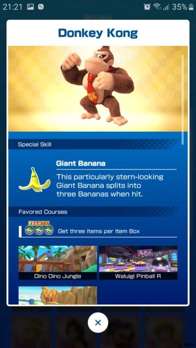 The next entry on our list of the best drivers in Mario Kart Tour is a stern-looking gorilla named Donkey Kong. Well, the looks may be deceiving because Donkey Kong is a proper racing character. However, he does not rely only on speed. On the contrary, this particular character also has a powerful specialty skill up his sleeve. To be precise, Donkey Kong can throw the Giant Banana, which can stumble up to four racers at once! In addition, Donkey Kong has two Frenzy levels and six secondary favored courses.