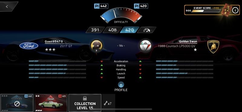 ストーリー モードでイベントをプレイするときは、2 台の車を選択する必要があります。選択するのは、レース パスに課されている制限の種類に応じて異なります。ここでの考え方は、イベント内でより多くのレースに参加するにつれて、各車が消耗するため、メインの車が故障した場合に備えて、適切な代替オプションを用意する必要があるということです.コレクション レベル 15 に到達すると、最大 3 台の車をイベントに持ち込むことができます。ゲームをプレイし続けることで、これらの素敵な乗り物のロックを解除し続ける原動力が再び与えられます。