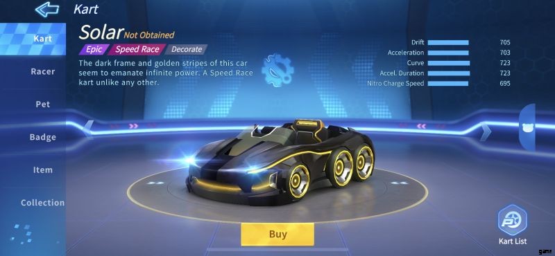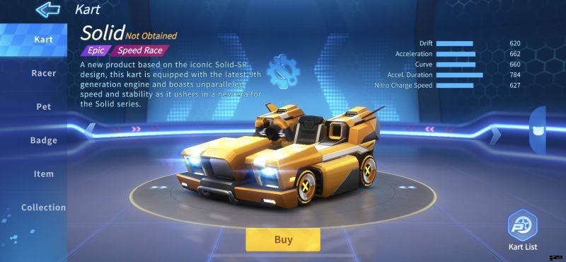 スピードレースに推奨されるゲーム内のほとんどのカートと同様に、Solid はストレートで最高のパフォーマンスを発揮します。ただし、この特定のカートでは、その加速持続時間が他のどの統計よりもはるかに印象的であるため、この強さは拡大されています。ただし、主にドリフトとニトロに頼って前進する場合、エピックティアのカートのドリフトとニトロチャージ速度がやや劣るため、使用が少し難しくなる可能性があるため、2 つの重要な弱点があります。