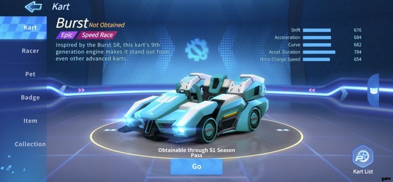 エピック ティアの優れたカートの 1 つとして、この車両を一時的または永続的に所有したい場合は、S1 シーズン パスまたはグローリー パスを取得する必要があることは驚くべきことではありません。このリストの他のいくつかのカートと同様に、784 の加速持続時間はスピード レースに適した車両としての地位を際立たせていますが、加速とドリフトに関してもそれほど悪くはありません.
