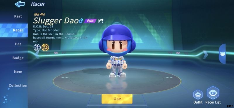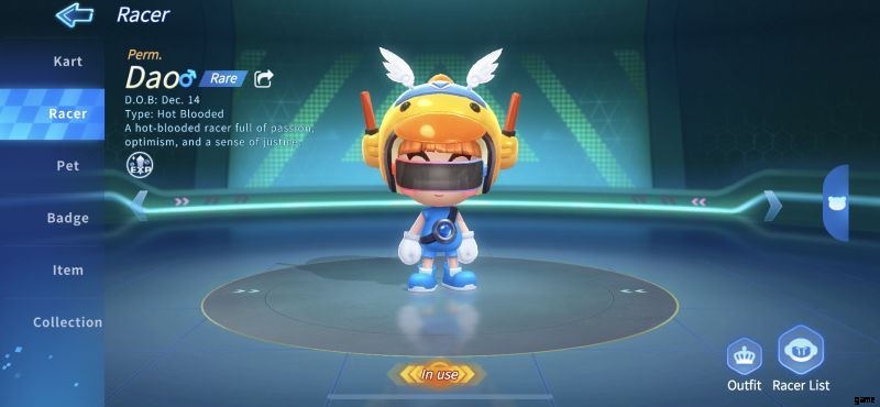 Dao は、KartRider Rush+ で開始できる 2 つのストック キャラクターのうちの 1 つであり、彼のシグネチャー カートが統計的にあまり印象的でないカートの 1 つであることは驚くことではありません。ストレートではうまく機能しますが、ドリフトカートとしては、その領域での統計がかなり平凡であるため、使用するのが少し難しくなります.稲妻に打たれた場合にニトロをランダムに取得する機能を備えた、アイテム レースに最も推奨されるプラクティス カートを少しパワーアップした、より魅力的な見た目だと考えてください。