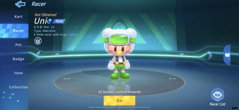 <強い>6. Uni (Rare, Adorable) – 10 percent more Lucci when placing in the top 4 in solo races and first place in team races. Available via S1 Season Limited Rewards in Ranked Mode.