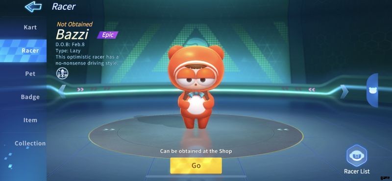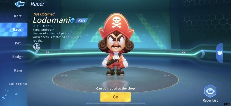 7. Diz (Rare, Shy ) – 5 percent more Lucci and 5 percent more EXP in any type of race. Stock racer.