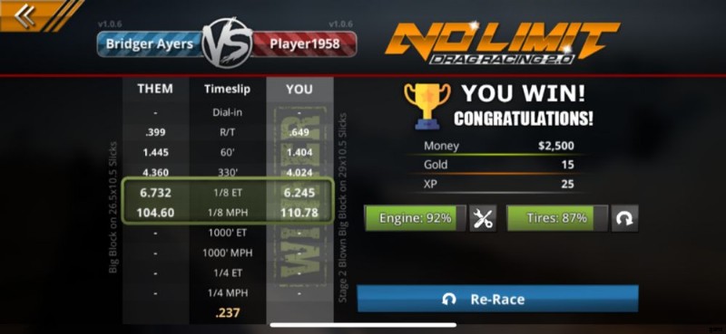 残念ながら、ノー リミット ドラッグ レーシング 2 で既に完了したレースをリプレイする機会はあまりありませんが、対戦相手を倒した場合でも、そのリレース オプションは引き続きオプションとして表示されます。対戦相手を 2 回倒したときに同じ賞金と金賞を獲得できなくても、できればその機会を利用することをお勧めします。