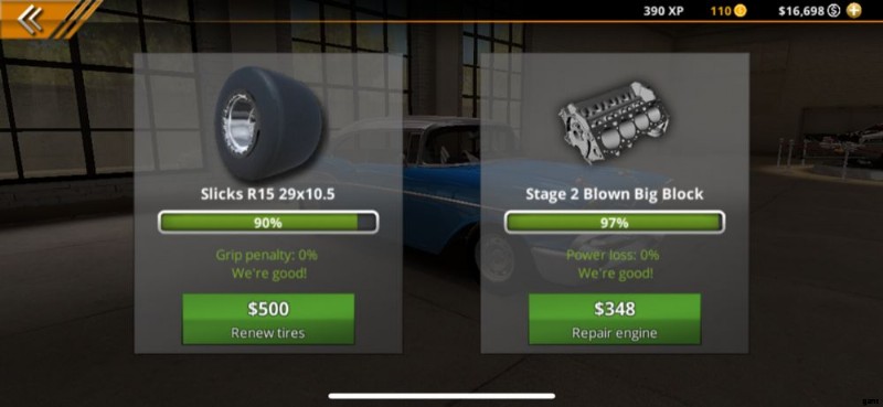 No Limit Drag Racing 2 で完了する各レースは、タイヤとエンジンに影響を与えます。結局のところ、ドラッグレースは両方の部分に非常に強い負担をかけるので、タイヤとエンジンに注意を払い、それらをできるだけ近づけないと、レースを続けるにつれて、ある時点でタイムが伸び始めるのは当然です.