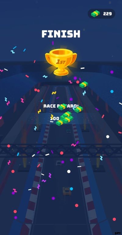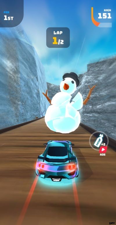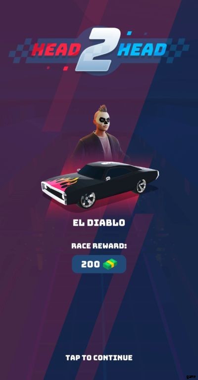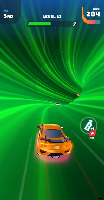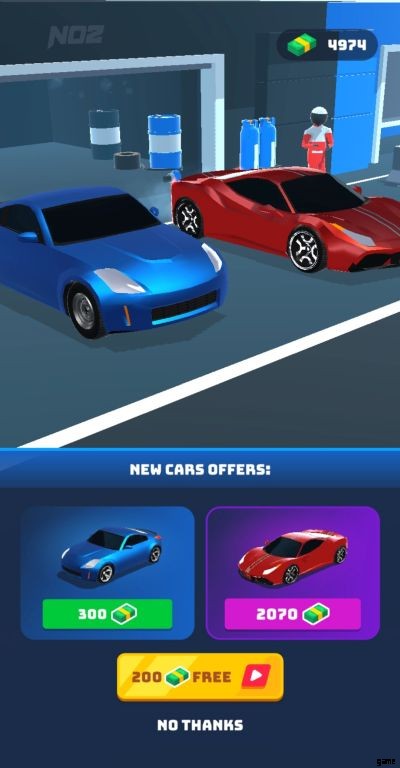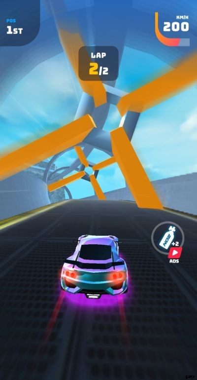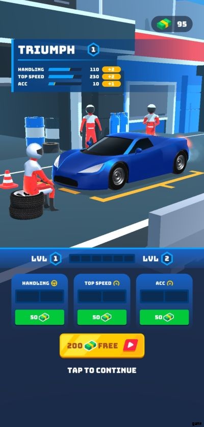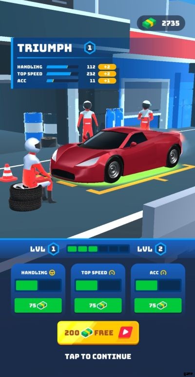 レースを開始する前に、画面には、最新のペイント ジョブとアンロックしたアイテムを搭載した、最新の入手した車が表示されます。画面の下半分に広告を見るオプションが表示されるので、ゲーム内で 200 のキャッシュを無料で獲得できます。これは 2 回提供され、このオプションだけで合計 400 のゲーム内キャッシュを獲得できます。