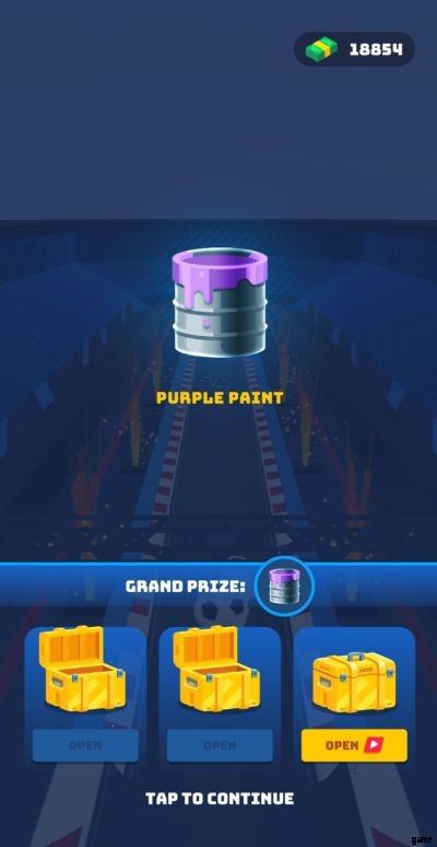 場合によっては、獲得したアイテムを取得するために 2 ~ 3 個のリワード ボックスを開けなければならない場合があります。無料で箱を開けるチャンスは 1 回だけですが、アイテムを手に入れられない場合は、広告を見て他のリワード ボックスを開くことができます。アイテムをすぐに入手できる確率は 3 分の 1 ですが、確率が常に有利になるとは限りません。その特定のアイテムを取得しない場合は、代わりに現金を取得します。以下の例では、パープル ペイント アイテムを取得するために、2 つ目の報酬ボックスを開き、広告を視聴する必要がありました。