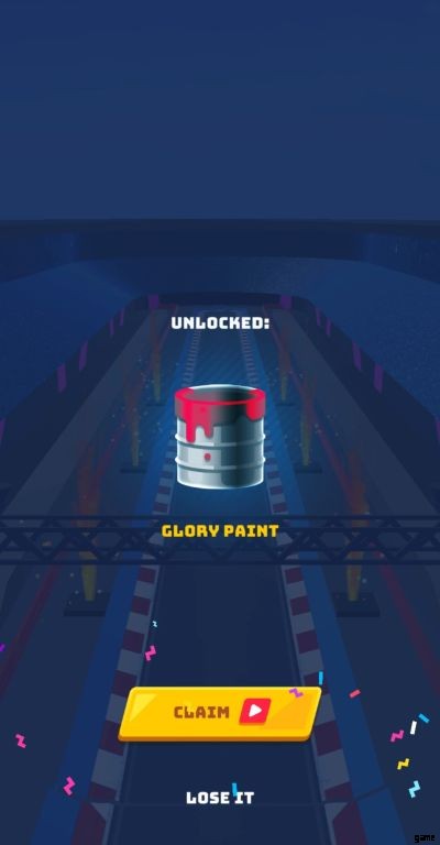 さらに、広告を見ずに続行するオプションもあります。代わりにこれをクリックすることもできますが、無料のゲーム内キャッシュやその他のアイテムを利用したかどうかに関係なく、広告が再生される可能性があることに注意してください.場合によっては、下の画像に示すように、複数のレースの後に獲得したタイヤ、ペイント、またはグロー ライトを取得するために、広告を見る必要がある場合があります。