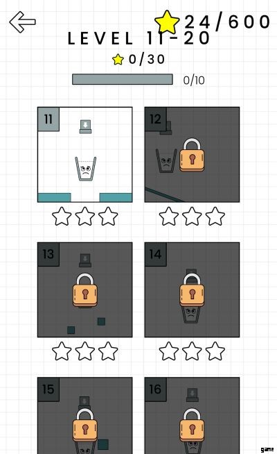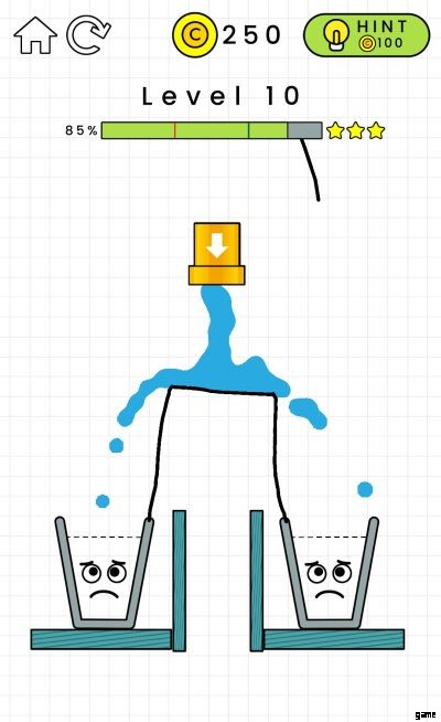 レベル 1 からレベル 10 の場合、ゲームプレイは確かに簡単です。空のグラス以外に水が流れないように線を引くだけです。当然、難易度は上がりますが、ほぼすべての初心者にとって簡単な課題です。