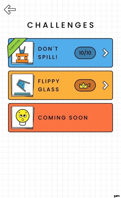 次の課題はFlippy Glassです。このゲームでは、水の入ったグラスをひっくり返して床に着地させる必要があります。水をこぼさないのが原則で、すぐに負けてしまいます。興味深いことに、このゲームプレイは継続的です。つまり、ゲームを進めるには、最初のフリップから開始する必要があります。それでも、土地が成功するたびにコインを獲得できるので、このチャレンジを継続的にプレイすることがモチベーションになります.