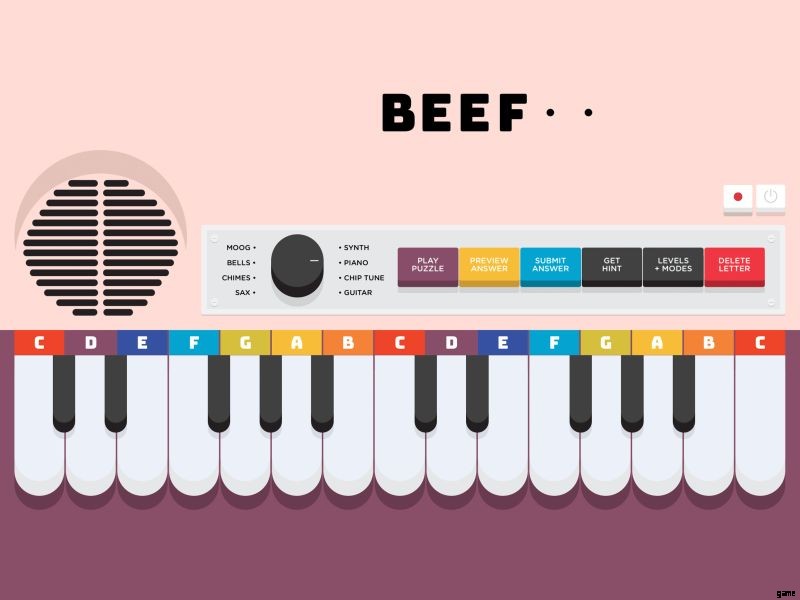 快適なサウンド スタイルを選択してもすべての音符を正しく取得できない場合は、別のアプローチが必要な場合があります。選択できる文字は 7 つだけです。それはAからGです。ゲームは、メカニズムに慣れるのに役立つ非常に短い単語から始まります。その束には多くの単語がないので、おそらく推測で逃げることができます.せめて2文字くらい正解できれば尚良し。次に、何が最も理にかなっているかに基づいて推測することができます。