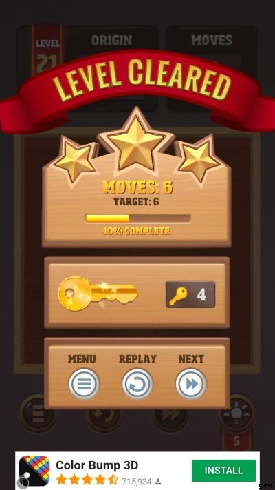 4×4 グリッド上のタイルの位置の変更はすべて 1 回の移動です。実際、プレイ画面の右上隅にある数字は、完了した移動の数を示しています。必要な手数以内にタスクを完了すると、スターが 3 つバンクロールに追加されます。