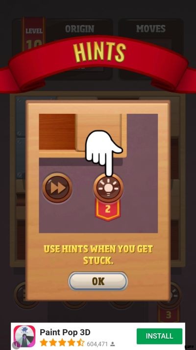 したがって、Unroll Me 2 をプレイする場合、ヒントは非常に重要です。ゲームのすべての段階で同じように重要というわけではありませんが、命の恩人になる可能性があります。他に何もないとしても、ヒントは多くの頭痛やフラストレーションからあなたを救います。したがって、パズルを解くことが「不可能」になったらすぐに助けを求めることをお勧めします。また、ヒントを呼び出して、最小手数内でコースを完了する方法を示すこともできます。