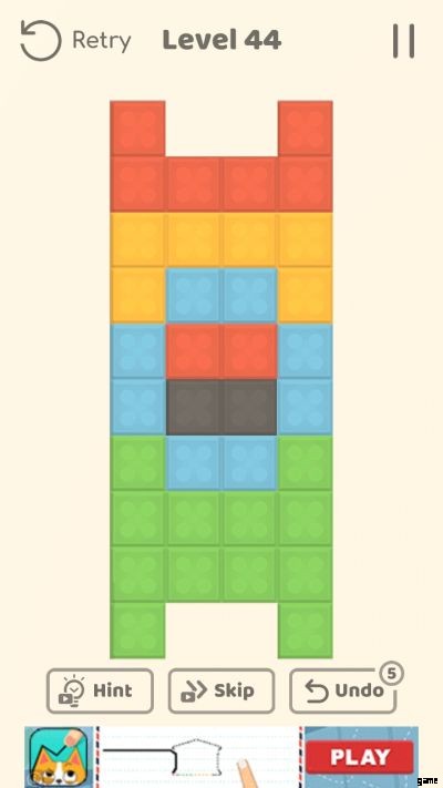 フォールディング ブロックのすべてのレベルが同じというわけではありません。それらのいくつかは非常に簡単ですが、他のものは多くの精神的刺激を必要とします.その上、いくつかのレベルは超えることができないようです。その場合、スキップ機能は優れたツールです。広告を見てこのボタンを押すと、Folding Blocks ゲームが魔法のように動きます。別の方法で、次のレベルに移動します。