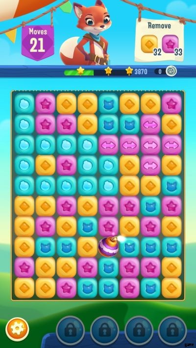 パズルがブースターに変わると、特定のブロックに点滅するサインが表示されます。たとえば、矢印の付いたものは、ロケットで報酬を与える準備ができています.ただし、秘訣は、パワーアップをアクティブにするときに、競技場の正しい位置をタップすることです。コンボ攻撃で発動すると最強の効果を発揮する。これは、隣接するセルにパワーアップを配置する必要があることを意味します。 Pet Rescue Puzzle Saga では戦略的思考が大いに役立つので、行動方針を計画してください。