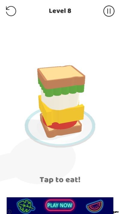 ただし、Sandwich のゲームプレイで注意が必要なのは!プレイヤーはレベルごとに 1 回だけ元に戻すことができます。このオプションを使用すると、サンドイッチを完成させるまでパーフェクト ゲームをプレイする必要があります。遅かれ早かれ、誰もが間違いを犯します。そのため、リトライは避けられないツールです。しかし、頭を冷やして間違いから学べば、Sandwich の最も難しいレベルも克服できます!
