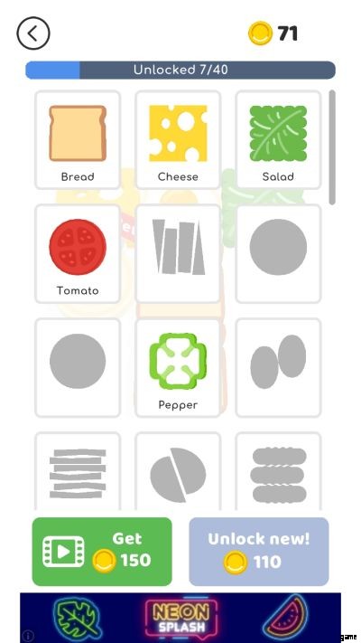 サンドウィッチをプレイするとき、金貨は非常に価値があります。そのため、可能な限りあらゆる方法でそれらを収集することが重要です。たとえば、このゲームでは、広告を視聴するたびに 150 コインを獲得するオプションがプレイヤーに提供されます。動画の長さは約 20 秒なので、1 つか 2 つ見ることに決めても、それほど時間を失うことはありません。言い換えれば、あなたの時間を「犠牲にして」、いくつかのビデオを見てください.そうすることで、自由に使えるコインの数が急増します。