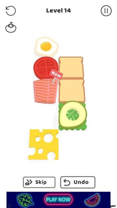 しかし、一部のパズルは簡単には解決できません。明確にするために、このゲームのゲームプレイは多くの間違いを許しません。したがって、ペアなしで食べ物を残すと、パズルを完成させることができなくなります。たとえば、材料の 1 つが自立していて、どの方向にも折りたためない場合は、レベルを再起動する必要があります。したがって、ゲームのこの要素に注意を払い、常にサンドイッチの構成要素のペアを作成してください。