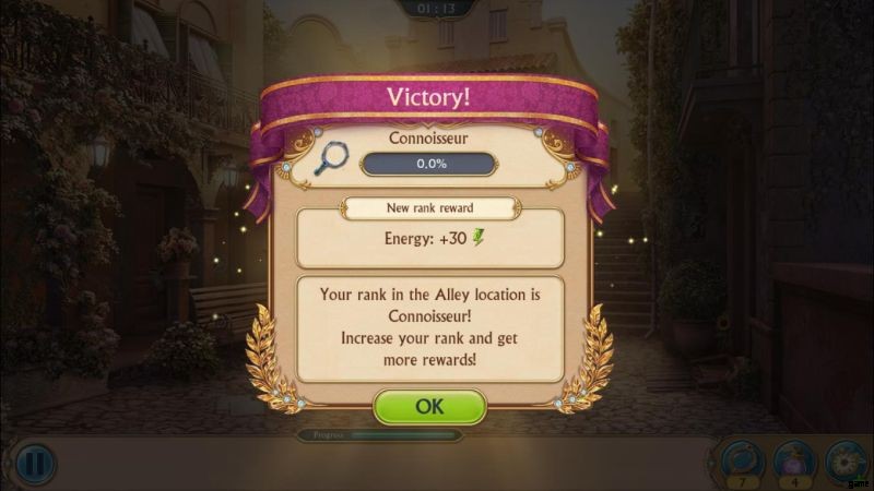 プレイするどのレベルにも採点システムはありません。 10 秒または 100 秒でシーンを完了すると、同じ報酬が得られます。より多くの報酬を得る唯一の方法は、各シーンの習熟度を上げることです。場所をタップすると、小さなウィンドウが表示されます。このウィンドウの左上に報酬が表示されます。中央の [探索] ボタンのすぐ上には、習熟度バーと現在の評価が表示されます。バーがいっぱいになると、熟練度が上がり、報酬も上がります。シーンをうまく探索することで、バーを埋めることができます。