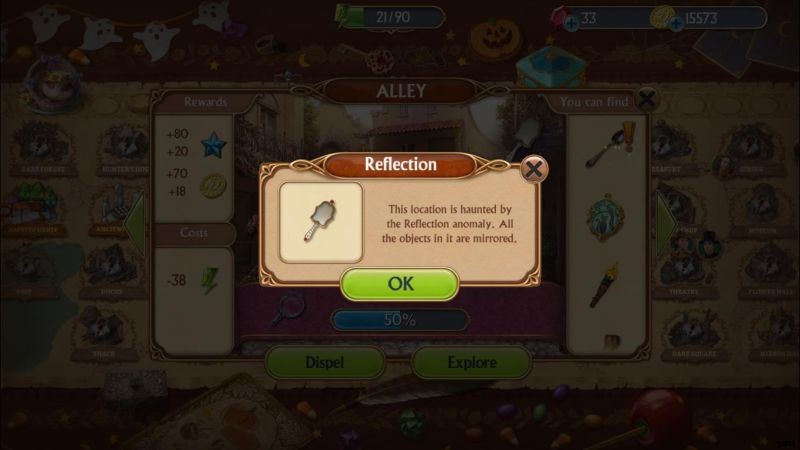 異常は場所にランダムに表示されます。それらはシーンの探索をより困難にし、探索のコストを 2 倍にします。必要なアイテムを使用することで、プレイ前にアノマリーを解除できます。必要なアイテムがない場合は、ゲームのプレミアム通貨であるルビーを使用する必要があります。