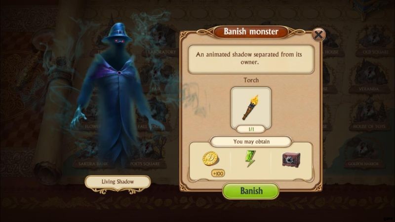 メインマップを見ていると、時折様々なモンスターが徘徊しているのが見えます。これらのモンスターを追放するために特別なアイテムを使用できます。ローミング モンスターをタップすると、追放に必要なアイテムが表示されます。必要なアイテムがない場合は、[検索] ボタンをタップすると、特別なアイテムをドロップする場所がゲームに表示されます。