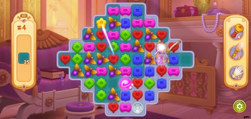 各チャレンジには、通常、特定の色のタイルをいくつかクリアするか、特別なタイルを破壊/収集するか、またはその両方が含まれる独自の目的があります。プレイヤーは、ゴールに到達するために自由に移動できる数が事前に割り当てられています。タイルをクリアするには、ユーザーは同じ色の 3 つ以上の宝石を一致させる必要があります。ストーリーはチャプターに分かれており、それぞれがボード上に新しい特別なタイルを紹介するので、プレイヤーは決して退屈な瞬間を経験することはありません.