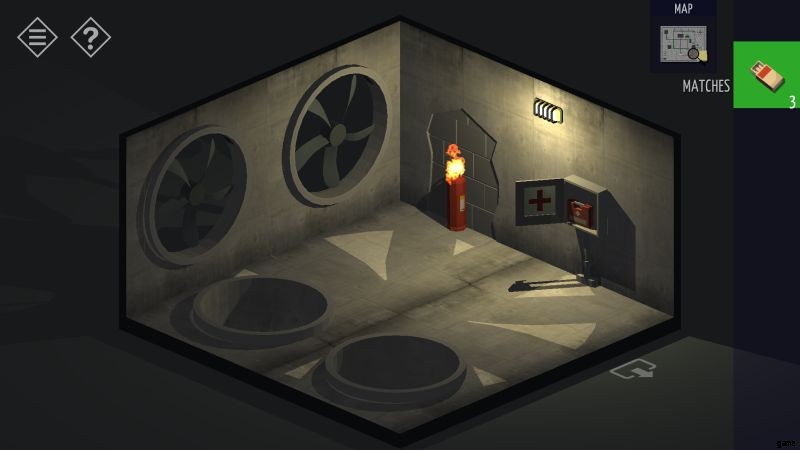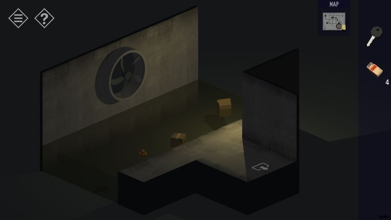マッチがあれば、プロパン ボンベに点火して壁を爆破することを考えるかもしれません。ただし、天井から吊り下げられた大型の扇風機があり、毎回炎を消しています。もう一度電源室に戻り、ファン 7 がオフになるまでレバーを軽くたたきます。ファン 7 の内部には、前述のシーリング ファンにつながるはしごがあるはずです。
