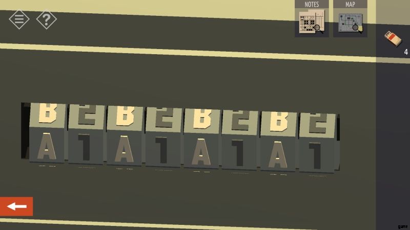 像を右に回すと、3 番目の部屋のロックが解除され、部屋の反対側にある 4 つの柱と、2 番目の部屋に見られるものよりもはるかに高い柱が現れます。いくつかのポールには立方体が配置されており、その部屋の各壁には、ポールに配置する必要がある灰色と白の立方体の正しい順序が示されています.