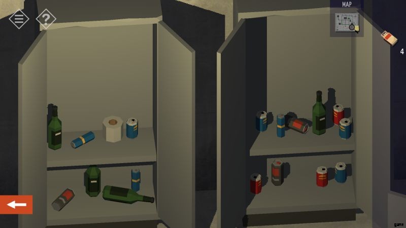 コンソールの近くには、さまざまなアイテムが入った 4 つのキャビネットがあります。パスワードは、コンソールに既に並んでいるものを含め、4 つのキャビネットすべてで見つけたアイテムの数です。たとえば、すべてのキャビネットに 5 ロールのティッシュ ペーパーがあり、既にコンソールに 1 つ追加されている場合、パスワードの 4 桁目は 6 です。キャビネットには似たような見た目の缶が保管されているため、青い缶は少し誤解を招く可能性があります.パスワードに関連する青い缶は薄いです。