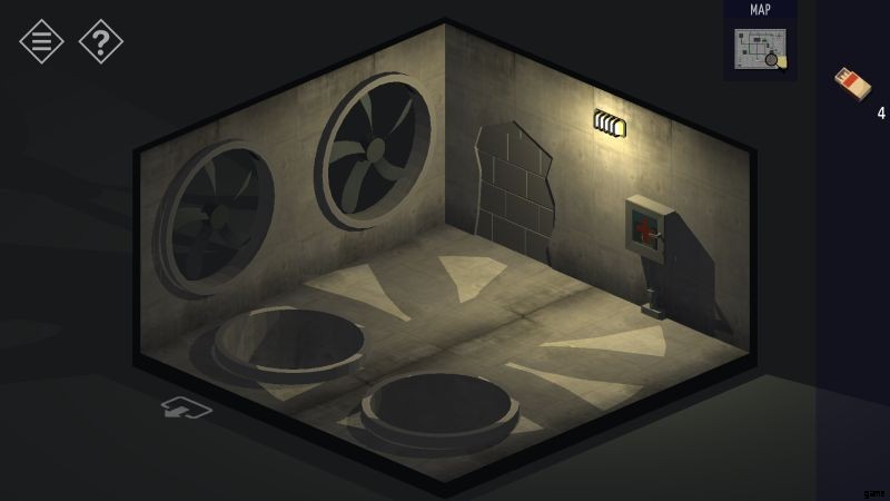 コンソールのロックを解除すると、メンテナンス トンネル内の 7 つのファンすべてに向けられたカメラと、位置に応じて特定のファンを遮断するレバーにアクセスできます。ファン 2 がオフになるまでレバーを軽くたたき、下水道に戻ります。ファン2に到達するには、下水道の暗い部分に向かい、壁に横たわっているパレットを見つけて持ち上げます.ファン 2 に戻り、パレットを下水道に置きます。水に浮かんでいた別のパレットを所定の位置に移動して、ハンドルを取得できるようにします。電力室に戻り、スイッチにハンドルを取り付けてオンにすると、下水道の残りの部分に光が戻ります.