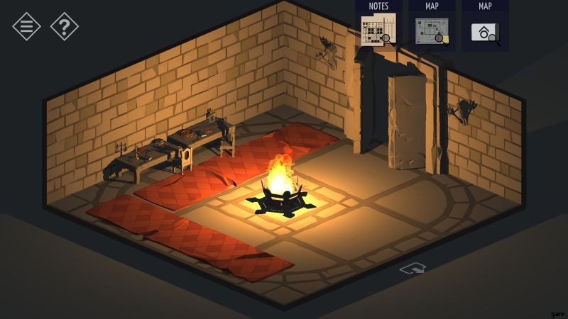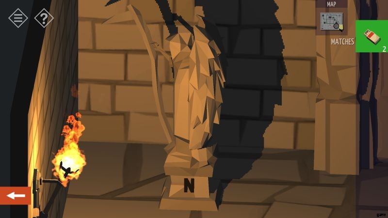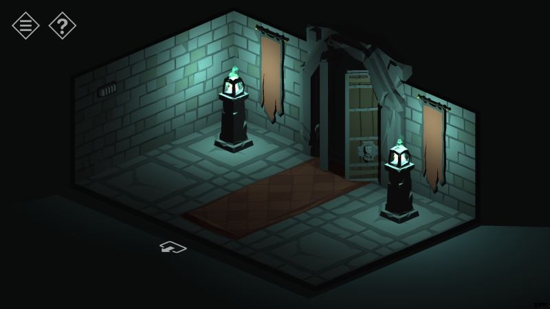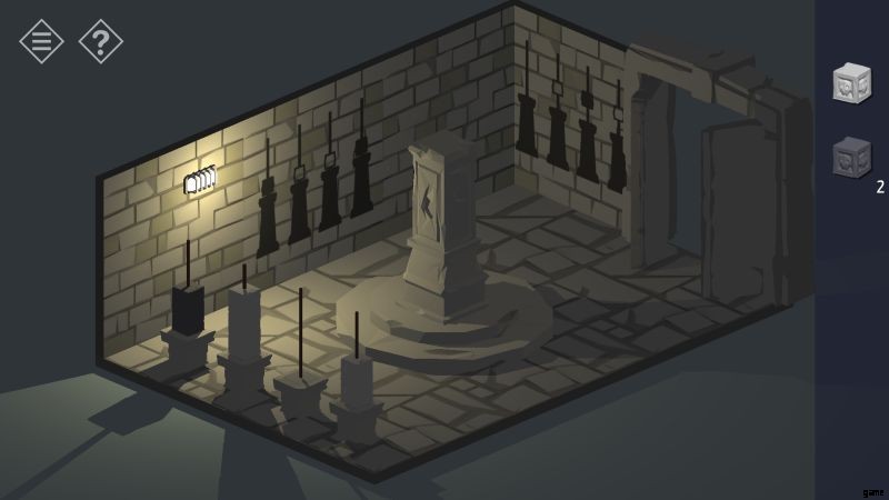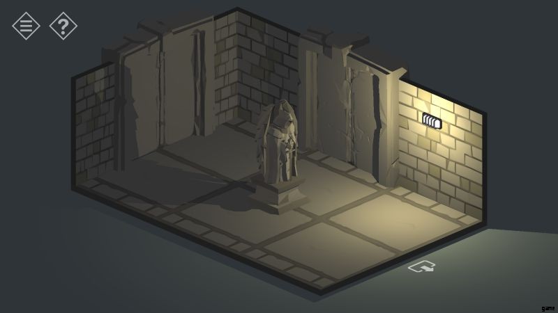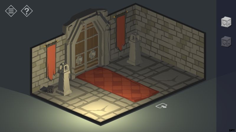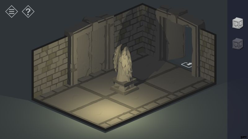 洞窟に入ると、教会の下にあるものと同様の別の遺跡につながります。遺跡への入り口には、各壁にドアがあり、部屋の中央に彫像があります。彫像が向いているドアは開いたままで、彫像をタップして時計回りに回転させ、開いているドアを変更できます。