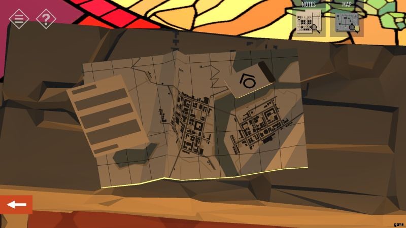 その窓の隣には、キーカードと、山の特定の領域が明確に記された地図と、「OLYMPUS プロジェクト」について言及されたテーブルがあります。キーカードを手に取り、マップを調査した後、この章の最後のパズルは、この部屋から出る方法を見つけることです。教会につながる石のドアが見つかるまでカメラを回し、松明の 1 つを引き下げます。これにより、石のドアが開き、車に戻ります。山への旅行の時間です。町に雨が降ったようです。