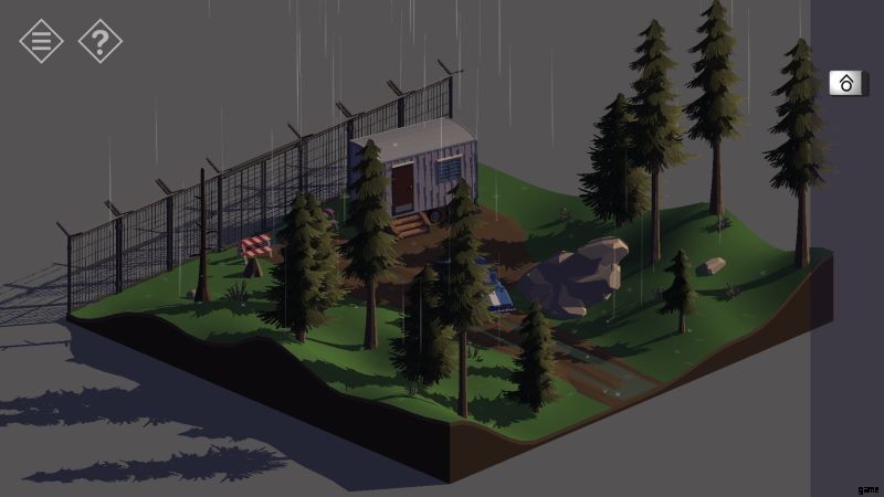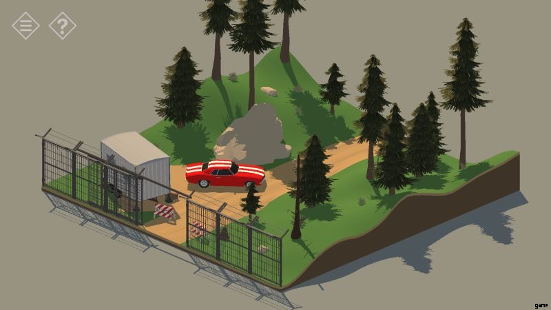 車で山に向かうと、道が門で塞がれていることに気づきます。近くの小さな小屋に門を開ける方法があるかもしれないので、中に入ってください。