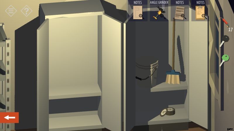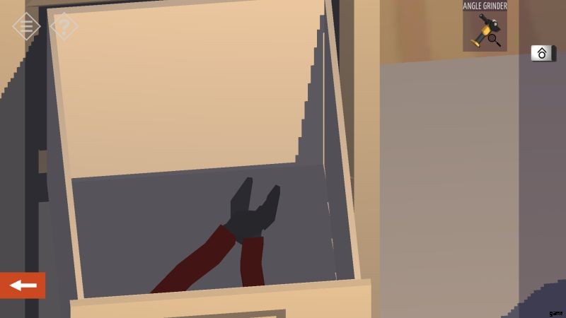 近くの棚にアングル グラインダーが置かれています。ただし、カッティングディスクとバッテリーが欠落しているため、フェンスを単純に切断することはできません。反対側の隅にあるファイル キャビネットを拡大し、中央にあるファイル キャビネットを開いて、ペンチを見つけます。