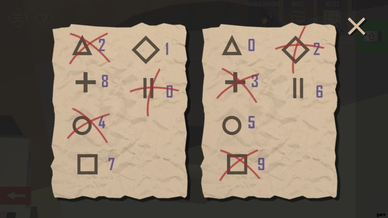 交差していない形状と数字の組み合わせは、コンピューターのパスワードに使用される数字です。コンピュータのロックを解除すると、電源が入っていればゲートを開くことができます。途中でアングル グラインダーを手に取ることを忘れないでください。