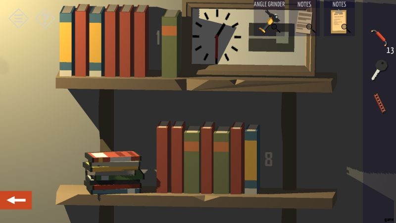 青色の鍵は、入り口に最も近い部屋のロックを解除します。部屋にはいくつかの本棚、施錠されたキャビネット、キャビネットの隣にはしごがあります。後で使用するためにはしごを手に取り、本棚を検索してさらに 3 つのジャンパーを探します。本をスライドさせると、壁に書かれた本棚の各層の番号が表示されます。これらの番号は反対側の壁のキャビネットと並んでおり、ロックが解除され、回路図が表示されます。