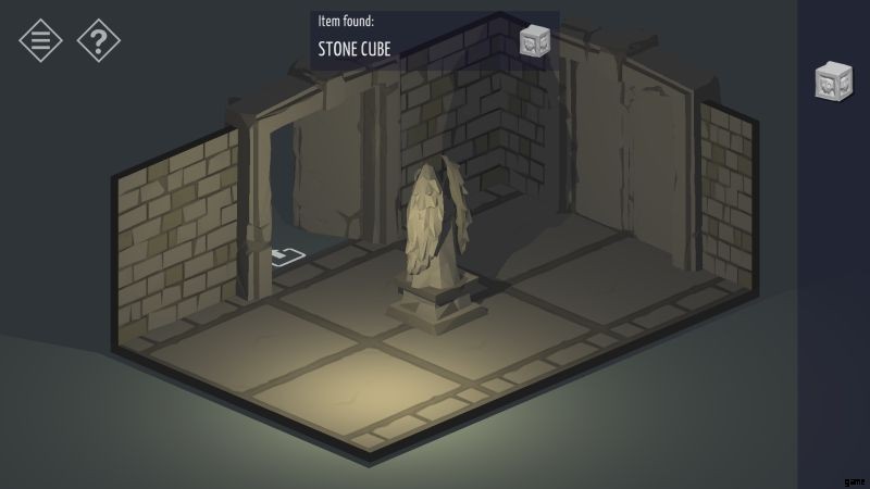 像の土台に白い石の立方体があるはずです。それを手に取り、彫像を 1 回タップして、入り口の左側にある部屋にアクセスします。