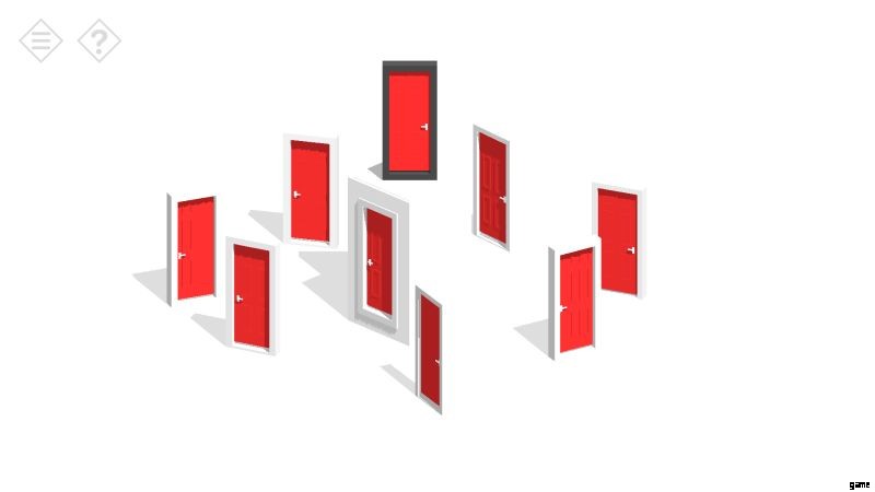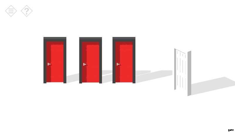 デバイスがアクティブになると、新しいエリアに入る赤いドアだけがある白い空間にいることに気付くでしょう。これらのエリアの 1 つには 3 つのドアがあり、それぞれに異なるパズルがあり、4 つ目のドアは 3 つのパズルをすべて解いた後にのみ開きます。各パズルを左から右に分解していきます。