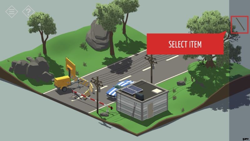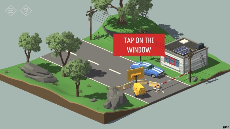 チュートリアルを兼ねるゲームのプロローグでは、ブーム ゲートによって Redcliff への入り口がブロックされており、守衛所に配属されている人は誰もいないようです。カメラを左にスワイプすると、守衛所の窓の反対側にある施錠されたドアと、近くの壁に立てかけられた 2 本のパイプが表示されます。パイプをタップしてピックアップし、そのパイプを使用してドアを開きます。これにより、守衛所にアクセスできます。