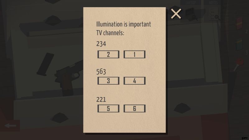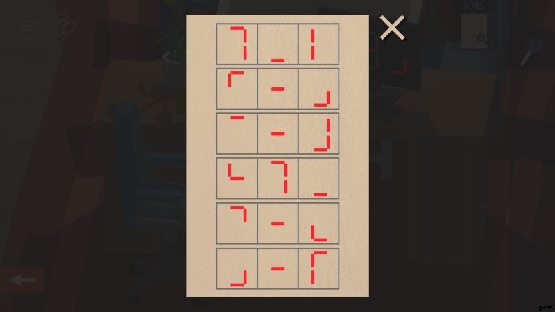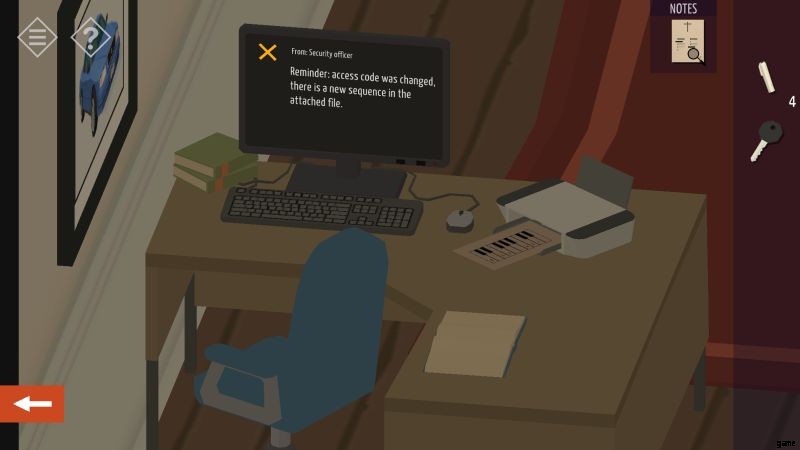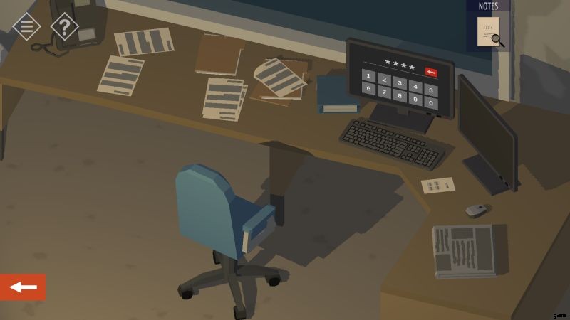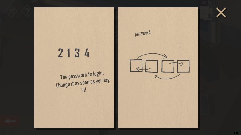 コンピューターの机の上にある紙をタップして、その日の 4 桁のパスワードを明らかにします。ただし、これらの番号を入力しようとすると、コンピューターはロックされたままになります。キーボードをタップすると、数字の順番が書かれた別の紙が現れます。コンピューターのロックを解除するには、指示に従ってそれらを入力してください。
