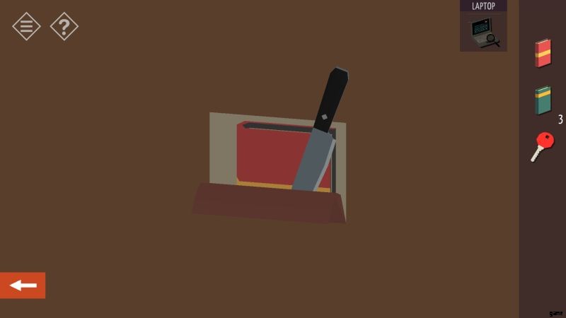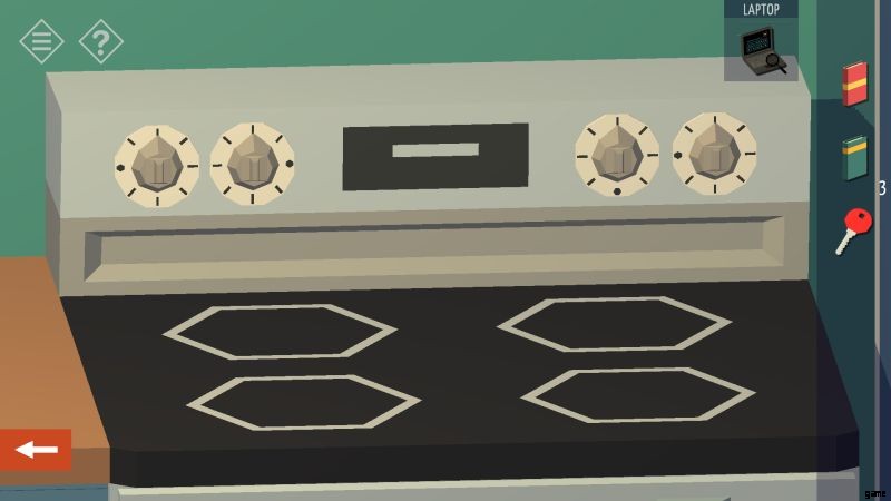 キッチンには腐った食べ物があり、パスワードに記号を使用するラップトップがあります。あなたが台所にいる間、カウンターの上に緑の本が見えます(3緑)。これらのアイテムとは別に、ナイフブロックをタップしてナイフを拾い、カウチパッチを切り開きます.ストーブを操作して、ドットで示されている赤い鍵を見つけた金庫のダイヤルの組み合わせを学びます。左から右に読んでください。これらすべてのアイテムとラップトップを手元に置いて、リビングルームに戻ってください。