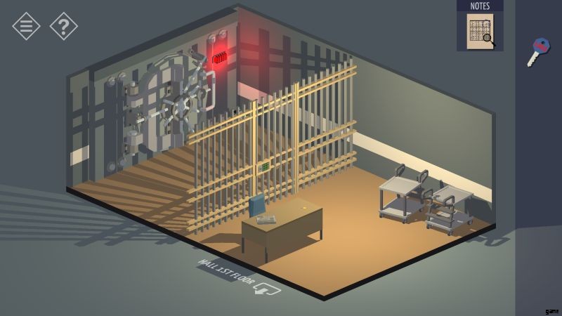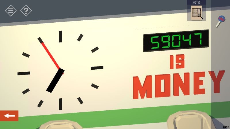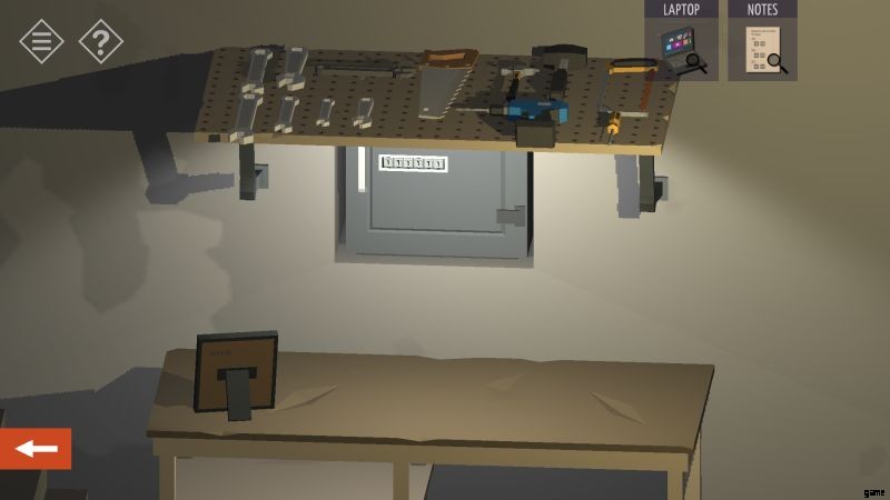 地下室のライトが消えているので、暗闇の中で小さな赤いライトをタップするだけで、その場所の電源が元に戻ります.地下室が浸水していることがわかりますが、近くに水を排出できるバルブがあります。地下室からすべての水が排出されたら、部屋の向こう側の作業台に行くことができます.ツール ラックにあるほとんどのツールは何もしませんが、ダーク グレーのレンチをひねると、ラックの下に金庫が現れます。ロックを解除するために 6 桁のコードを使用します。このコードは、作業台の近くの額縁の後ろに書かれています。コードを入力して貸金庫の鍵を入手してください。これは、地元の銀行への訪問を意味します。