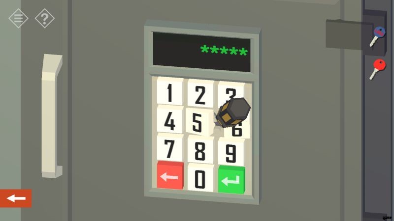 1階に戻り、該当する番号をレポートの数値になるまでタップしてパスワードを慎重に入力してください。コンピューターのロックを解除すると、金庫室へのアクセスが許可されます。保管庫は 2 つのキーパッドで保護されており、近くのデスクに黄色の鍵があるはずです。