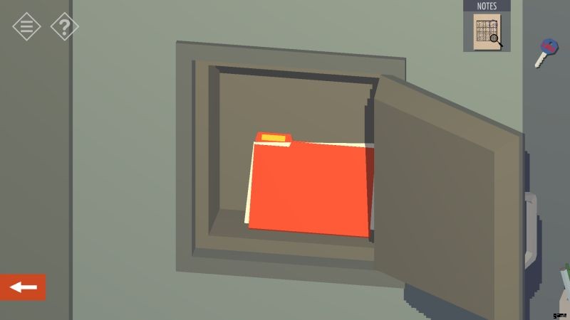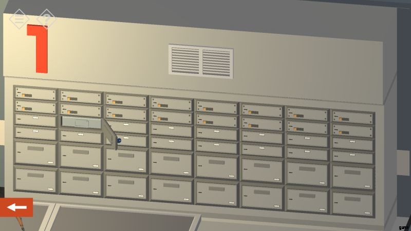 金庫のロックが解除された状態で、銀行での最後の目的は、父の家から拾った鍵と一致する貸金庫を見つけることです。壁の 1 つに、必要なデポジット ボックスの場所を説明する図が必要です: