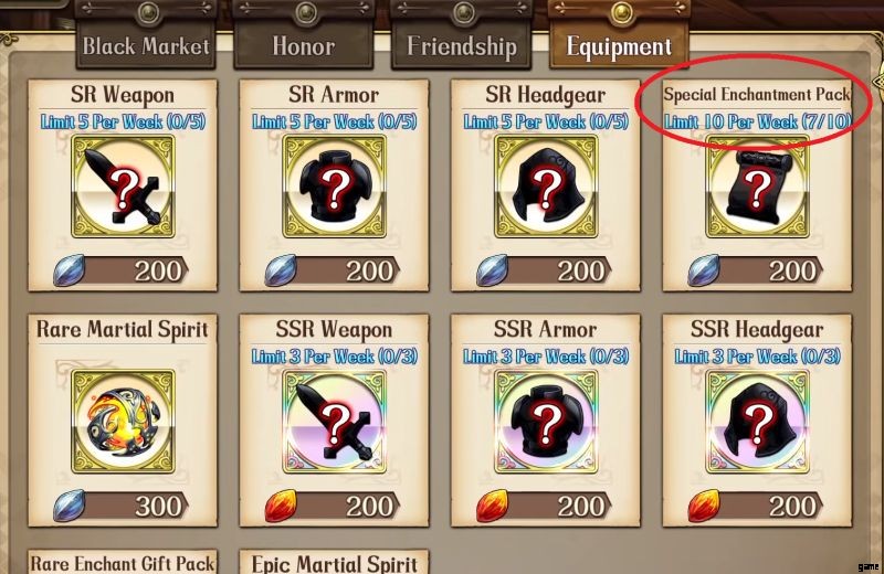パネルのストアセクションに移動してから、機器に移動してください。スペシャル エンチャント パックがあり、1 週間に 10 個までという制限付きで、バッチ全体を入手できます。これはかなり良い比率です。ただし、各バッチはそれほど安くはありません。200 ユニットのミスリル鉱石が必要だからです。このリソースをすばやく簡単に入手するには、いくつかの方法があります。