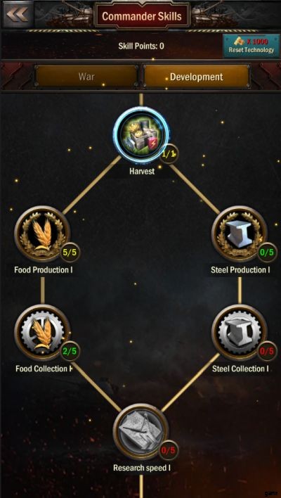 ゲーム開始時の最大の課題は、基地が建造物をアップグレードし続け、追加の部隊を募集するのに十分なリソースを生産できることを確認することです。農場と鉄鋼工場をアップグレードする以外に、司令官をレベルアップして獲得したポイントを使うこともできます。